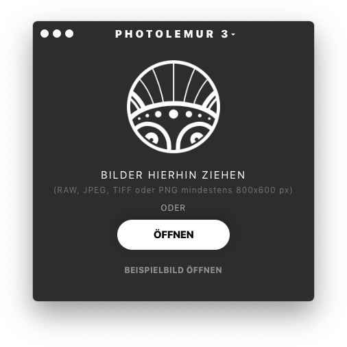 Nach dem Öffnen von Photolemur 3 zeigt sich ein einfaches Benutzerinterface, über welches sich die zu bearbeitenden Bilder per Button-Druck und Systemdialog oder per Drag & Drop öffnen lassen.