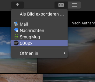 Fotos nun auf der 500px-Foto-Sharing-Plattform geteilt werden. Die Teilen-Funktion wurde entsprechend erweitert.